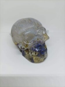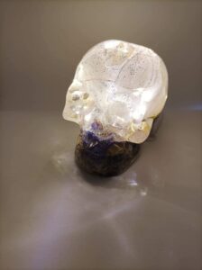 Vous cherchez une pièce de décoration qui sort de l’ordinaire ? Ne cherchez plus ! Ce crâne en résine est une création artisanale 100% unique qui allie mystère et magie.