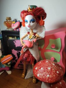Une customisation qui ne manque pas d’audace, mêlant l’esthétique punk-gothique de Monster High à la folie tyrannique du Pays des Merveilles.